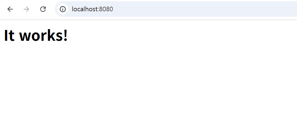 그 다음 http://localhost:8080/에 접근해 아파치의 초기 화면이 나타나는지 확인한다.