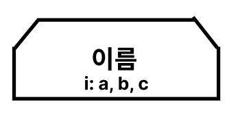 루프의 시작 기호 또는 종료 기호 안에 초기값(초기화), 증가값, 종료값을 표기한다. i가 변수명, 초기값, 증가값, 종료값 순으로 나열