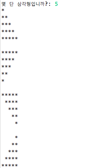 triangleLB(n); // 왼쪽 아래가 직각인 이등변삼각형을 출력