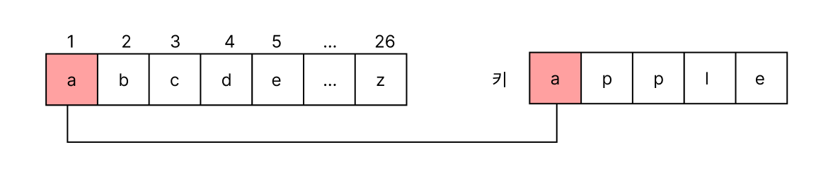 1) 알파벳 a부터 z까지 숫자와 매치한 표와 키이다.