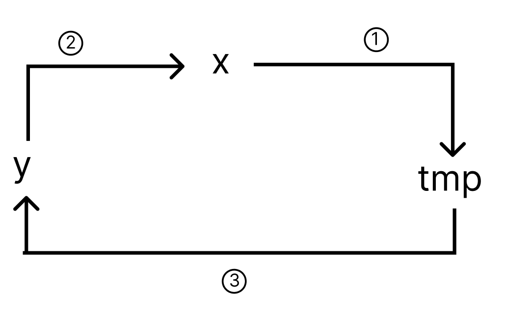 배열을 역순으로 정렬하기 위해서 변수 3개가 필요하다. (x, y, tmp)