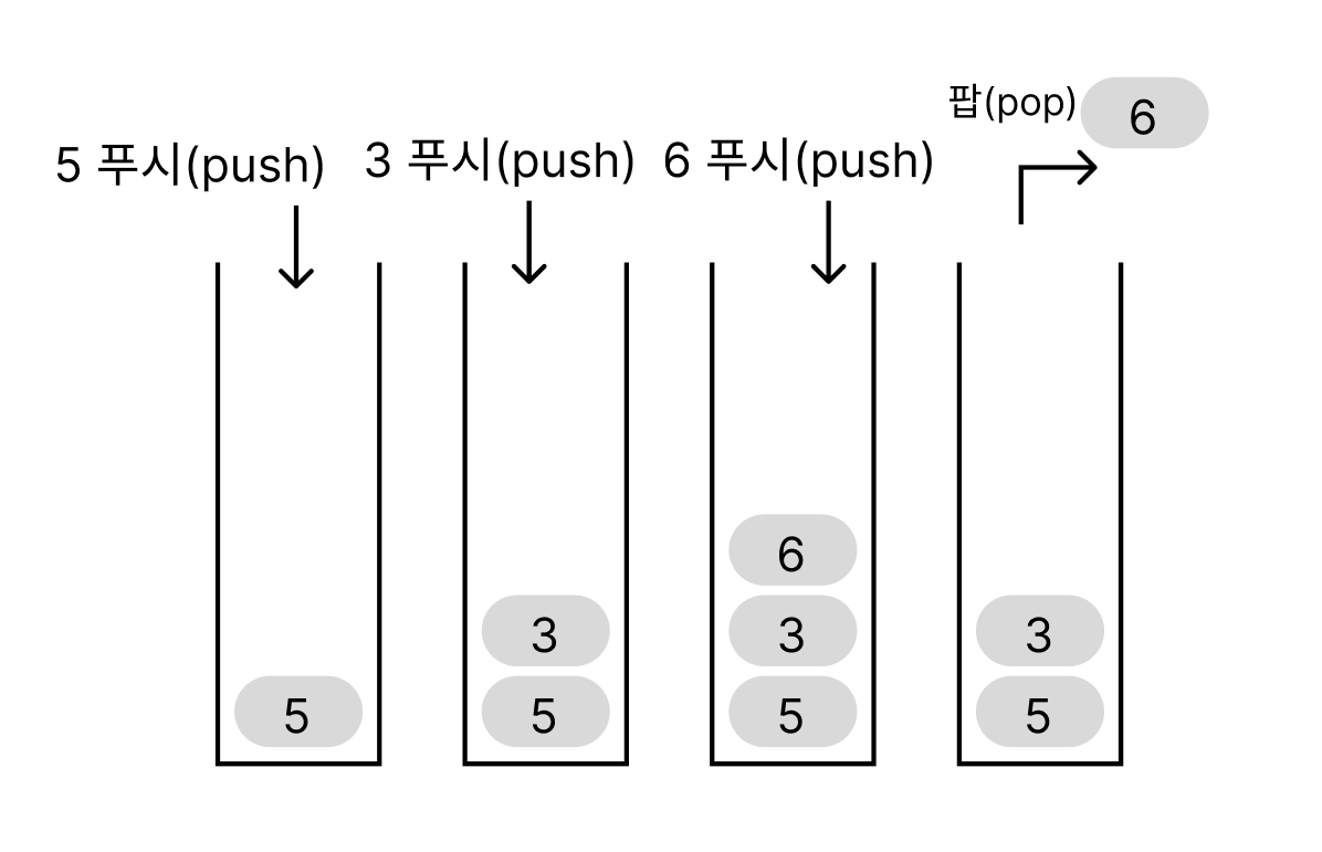 - 팝 메서드 pop : 스택의 꼭대기에 있는 데이터를 팝하고 그 값을 반환하는 메서드